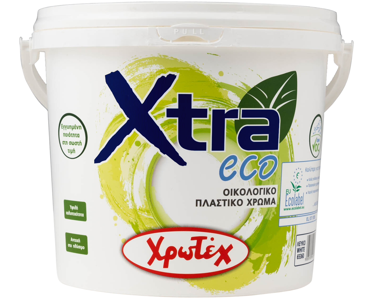 XTRA ECO is an ecological plastic paint for interior walls. It is characterized by high coverage , high efficiency and application economy . It shows excellent resistance to cleaning processes (washing-cleaning) while giving an excellent matte finish with high whiteness and unaltered shades.